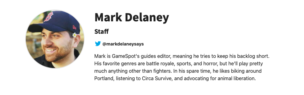 Let’s look at another example: Mark Delany, the Guides Editor at Gamespot.