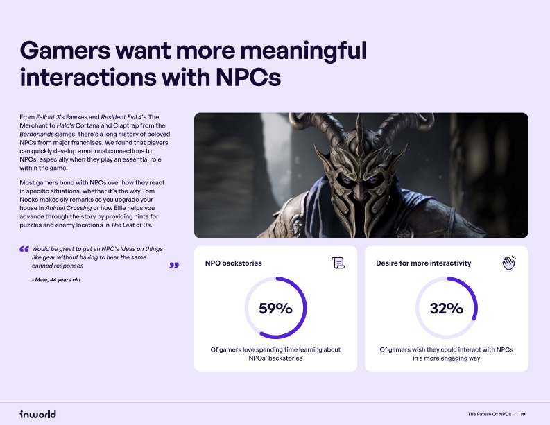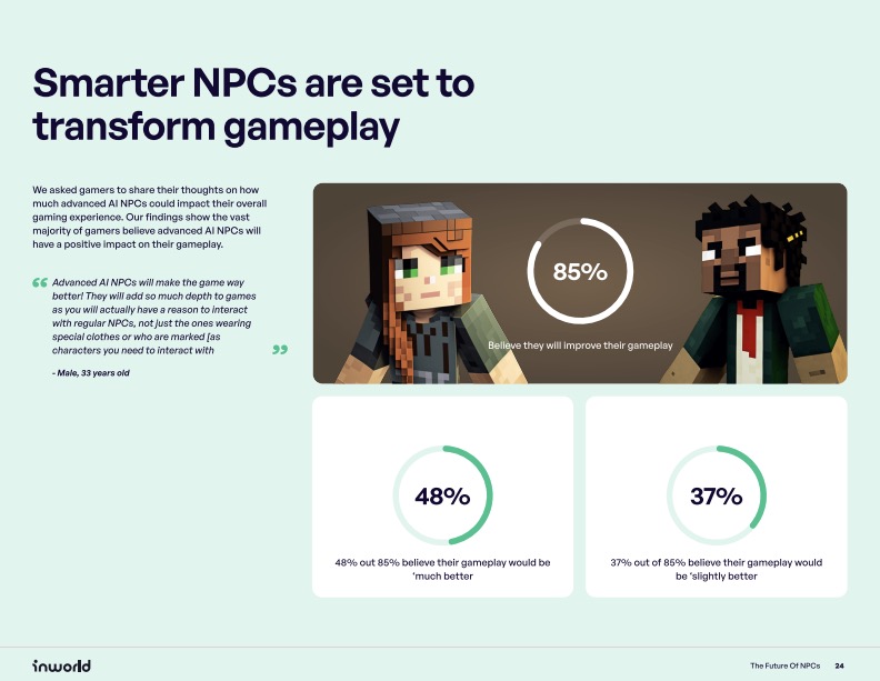 - Concept & Investment: We conceived the survey idea – The Future of NPCs – and secured Inworld AI’s buy-in, highlighting its potential to drive thought leadership and market understanding.